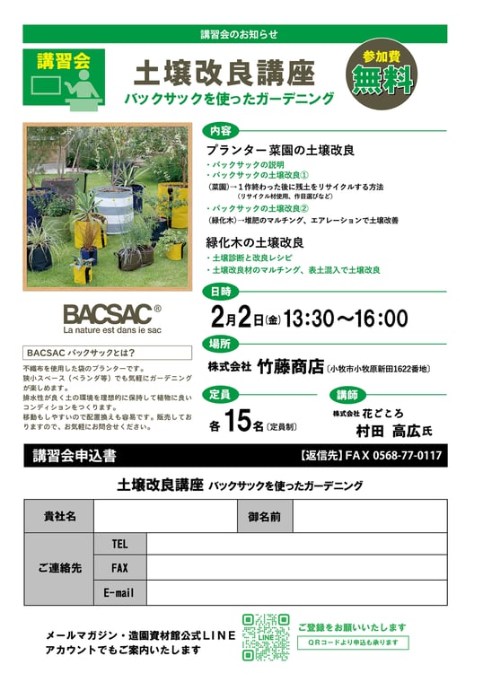 BACSAC(バッグサック)を使った土壌改良講座のお知らせです。